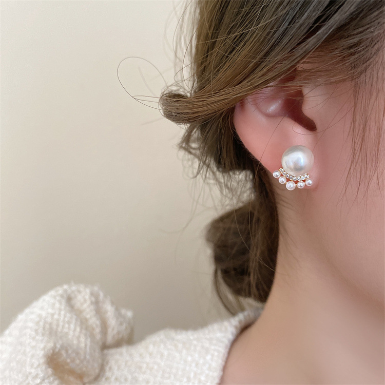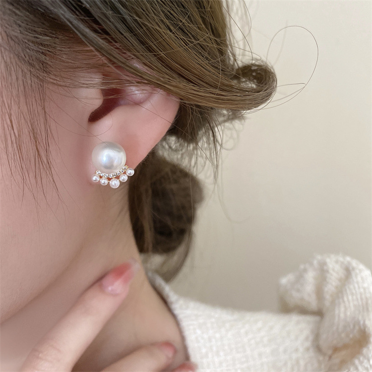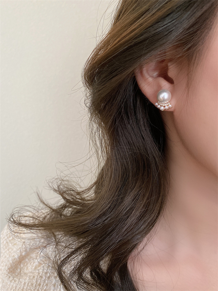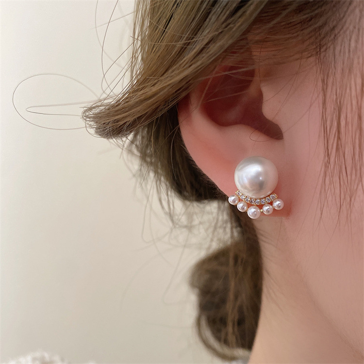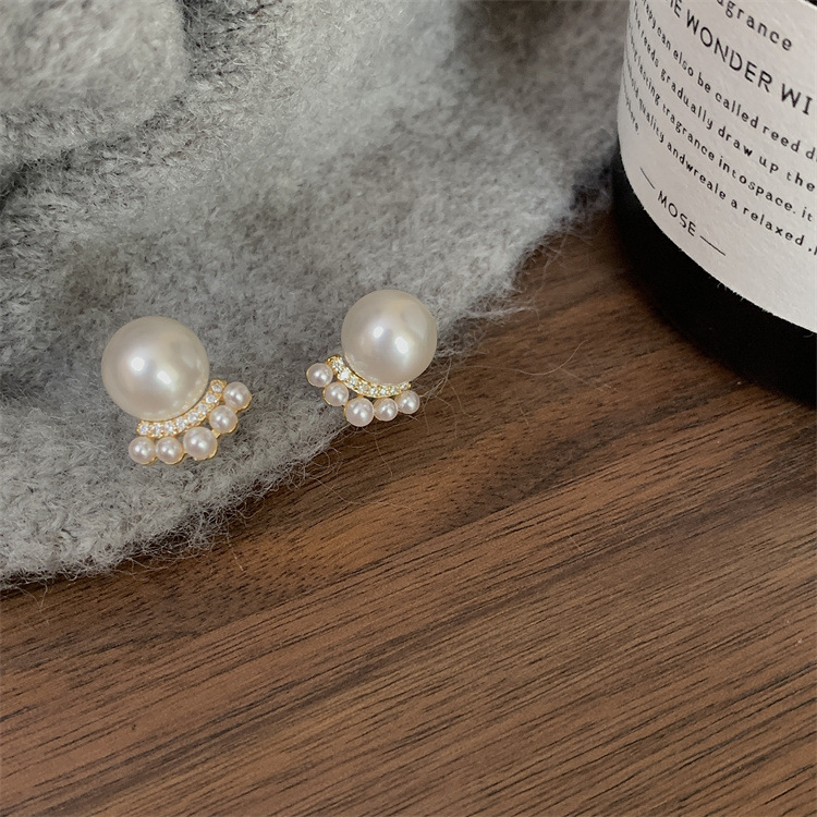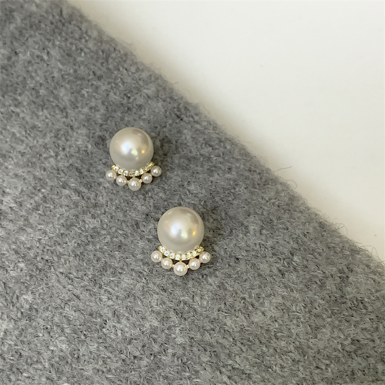 シンプルな灰色の真珠はジルコンのピアスをはめ込んでいます。