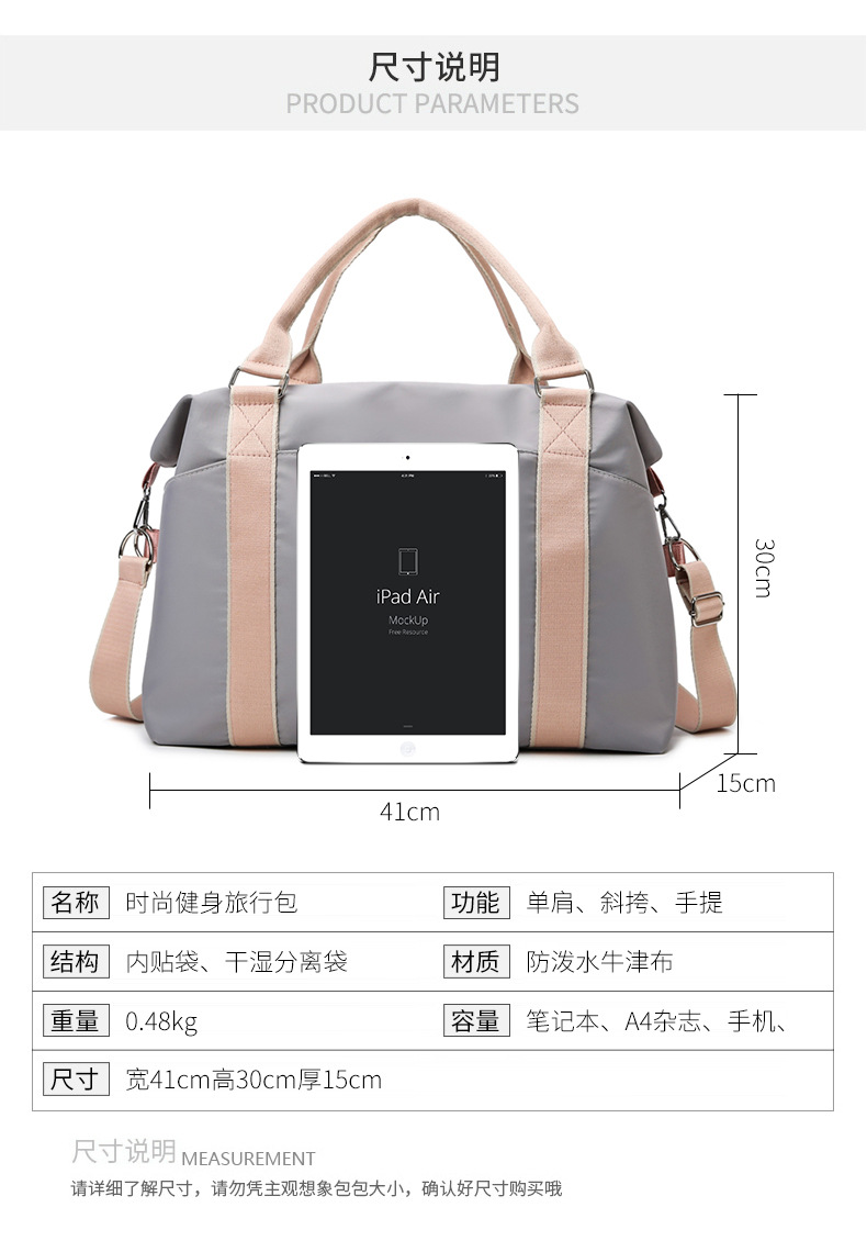 大容量旅行カバンフィットネス短距離出張手提げ荷物バッグレディース旅行可カバータイロッド出産待ち収納バッグ