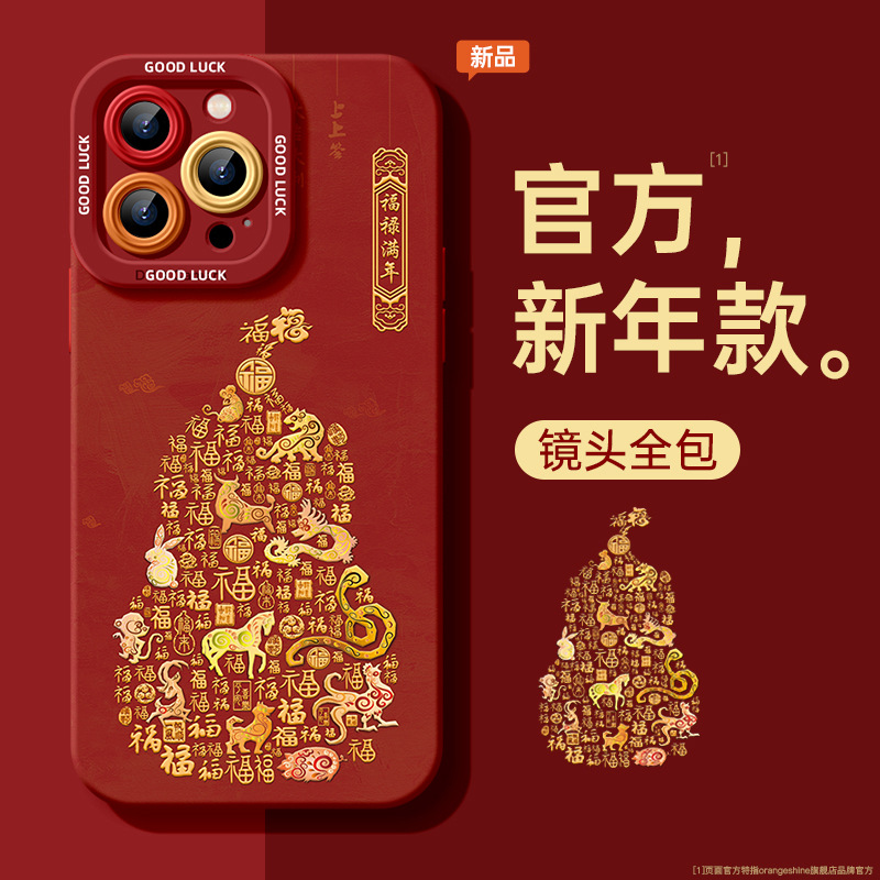 アップル16の携帯ケースを適用する赤いiphone15新年13ひょうたん福禄14ストラップ全包12高級感