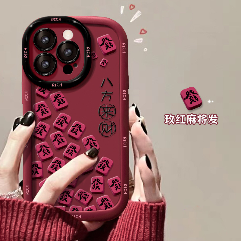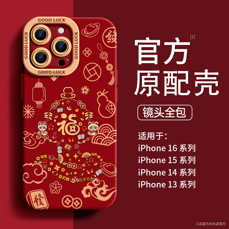 八方来財はリンゴ16proの赤い携帯ケース15小衆国風14新年の柔らかいシリコンゴムの転倒防止7/8を適用します。
