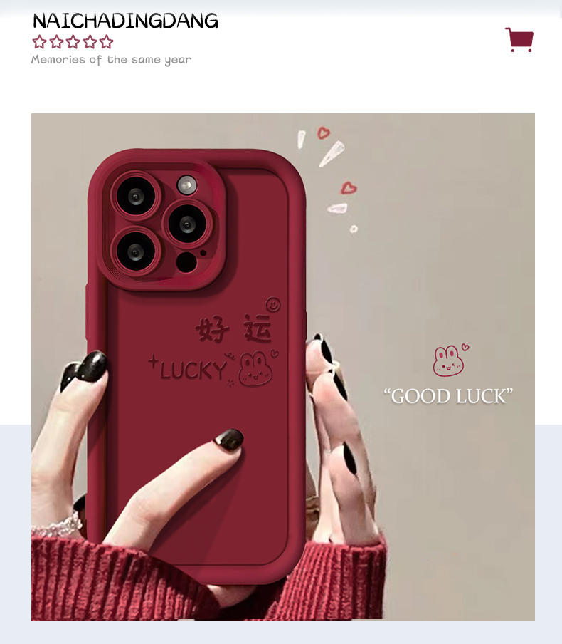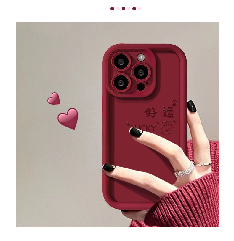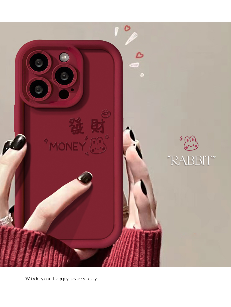 アップル15携帯電話保護ケースレッド2024新年モデルiphone14/13promax好運兎に適用