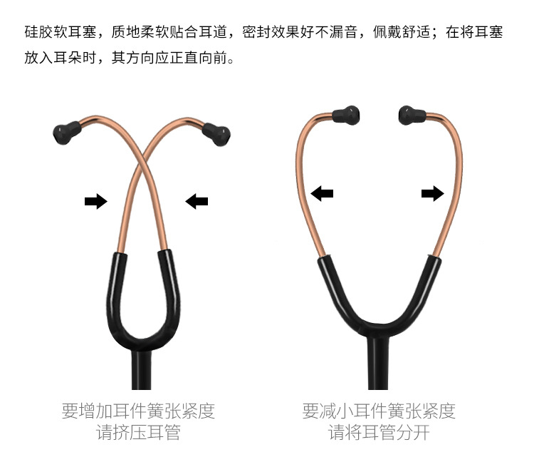 ケレント聴診器の部品の膜の切れのシリカゲルのヒョウタンの柔らかい耳栓の名前の医療用ホースは通用する金を適用します。