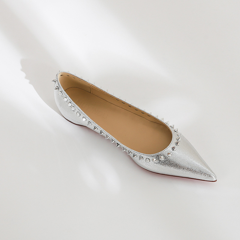 スポット24P1フラットシューズ女性2025年新型裸色ファッション百合先ドリル疲れない足気質シングル靴
