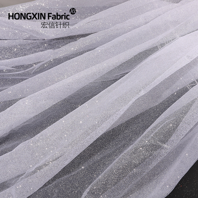 現物キラキラポリエステル銀白色散布金粉網糸生地金葱粉平布児童服装薄紗網布柔らかい
