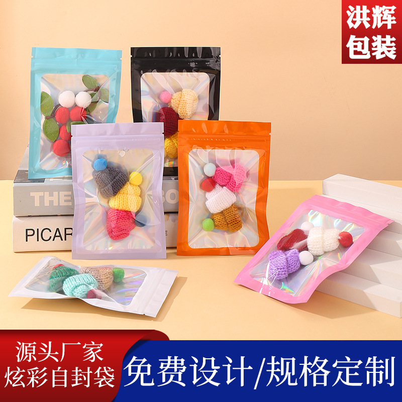 マカロン色自己密封袋ホログラム袋厚い透明カラー袋アクセサリー密封袋化粧ブラシ包装袋卸売り