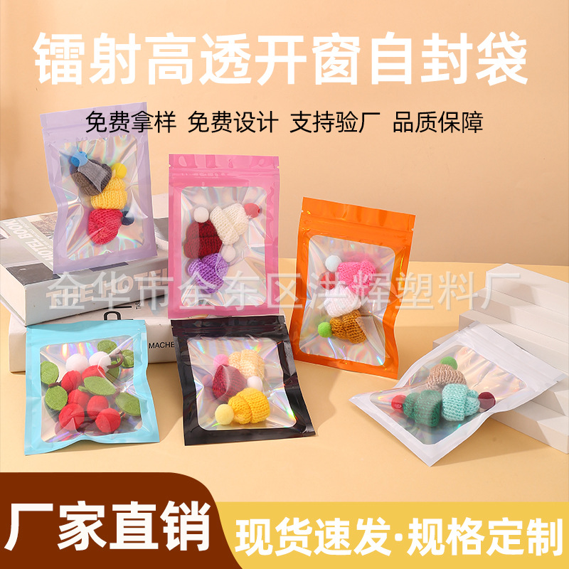厚みのある半透明レーザーグラデーションウィンドウジップロックバッグ陰陽骨袋ジュエリー収納包装プラスチック密封袋