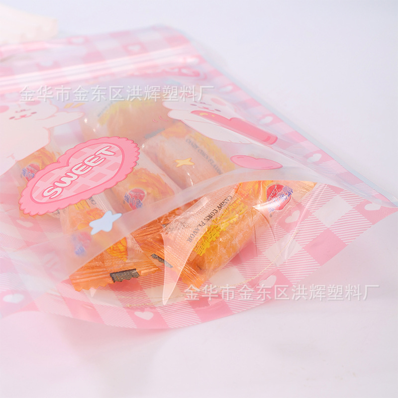 カラープリントの漫画の小さい白いウサギのミルクの砂糖の外の包装は自ら袋の間食のビスケットの桃のショートニングの密封を密封してファスナーの袋を収納します。