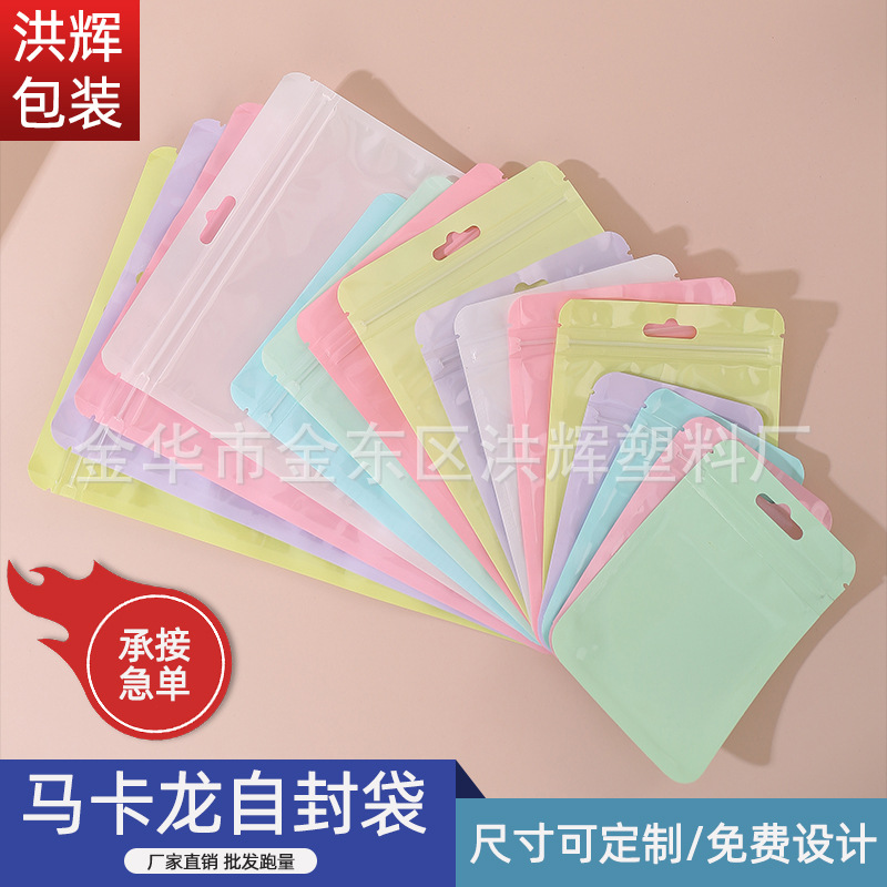 現物は厚いマカロン色の自封チャック袋半透明ヘアリング小物ホログラム密封包装袋卸売り