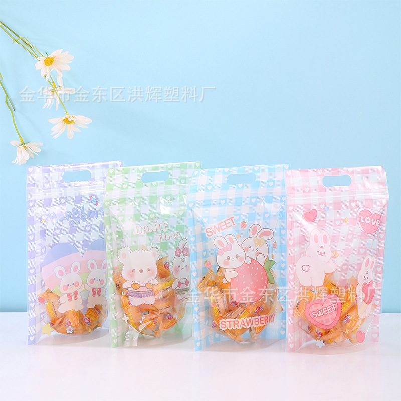 12シルク漫画小さな白いウサギプリント半透明自己封止自立袋キャラメルドライフルーツシール包装ビニール袋