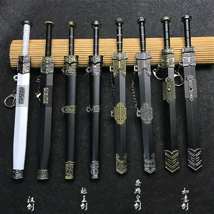古代の名剣越王勾剣の剣模型置物合金金属鞘付き剣のキーホルダー宝剣玩具