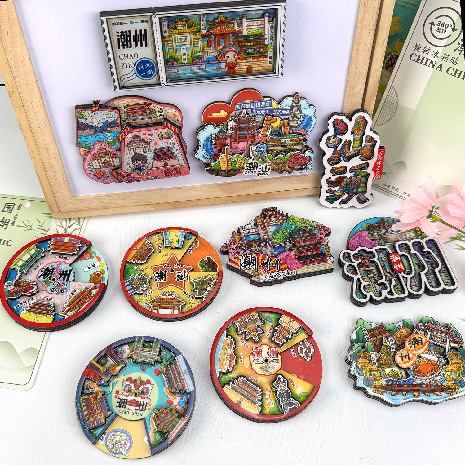 【潮州シリーズ】木製冷蔵庫は観光地区の観光記念品文を貼って広東都市のマグネット冷蔵庫を作ります。