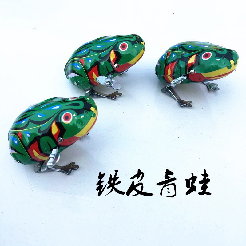 子供のおもちゃのぜんまいは跳んでカエルの経典のノスタルジックな8090おもちゃの露店のおもちゃの鉄の皮のカエルの卸売りを跳びます。