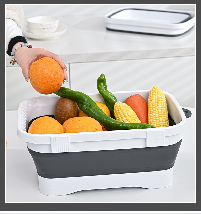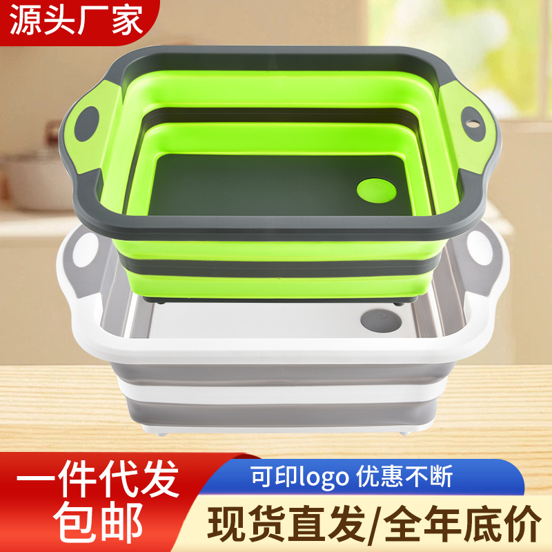跨境便携折叠餐板热销多功能折叠菜板沥水篮三合一两用切菜洗菜盆