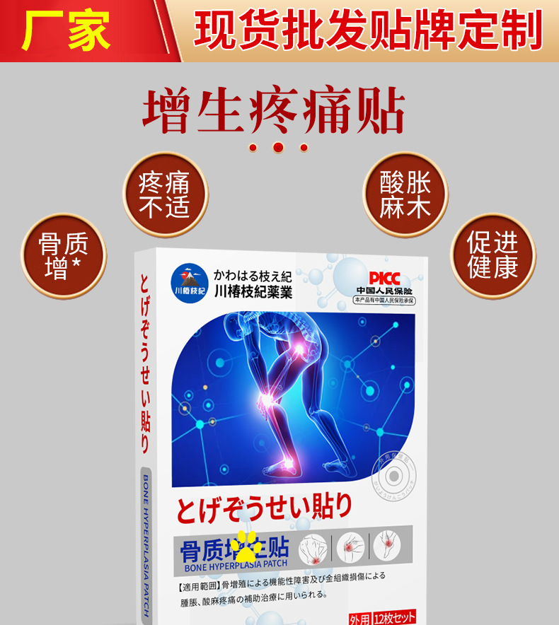 増殖膏は首の肩の腰の足の膝の関節の薬を貼って骨を刺して痛みを消します。