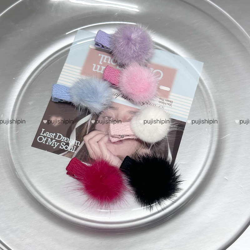 ぬいぐるみかわいいヘアクリップ前髪クリップ子供のサイドクリップミンク毛玉全包ヘアピン毛むくじゃらクリップ少女の髪飾り
