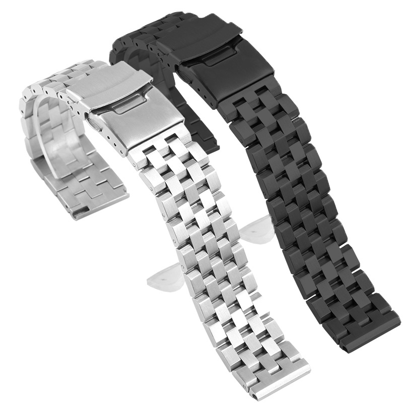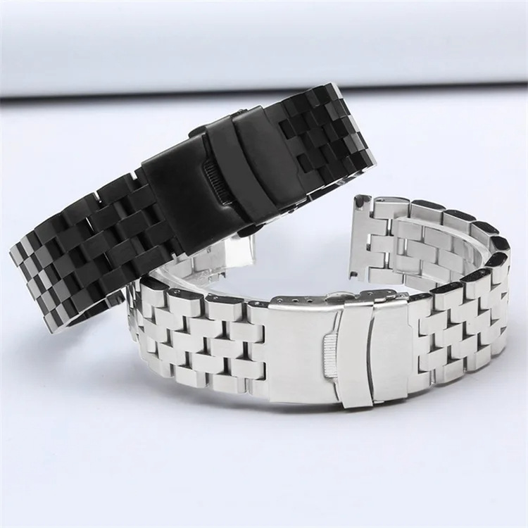 現物五珠中実双保険ステンレス時計バンド通用機械腕時計鋼帯金属時計チェーン24mm
