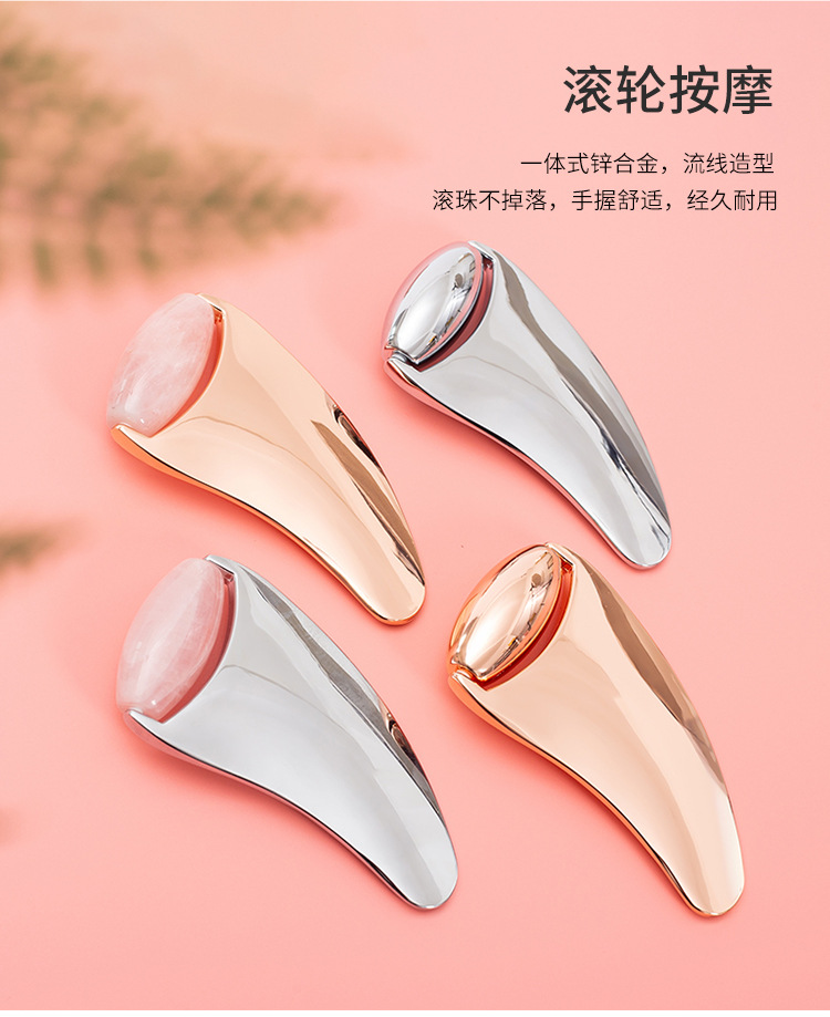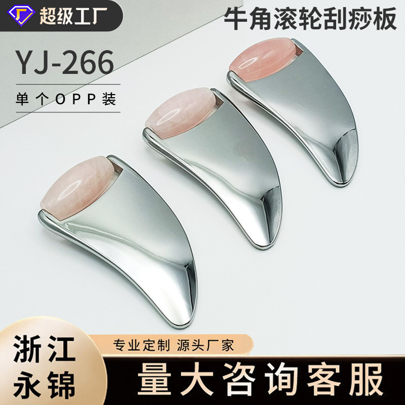 玉石滚轮金属刮痧板锌合金牛角刮痧板滚轮板美容院面部提拉工具