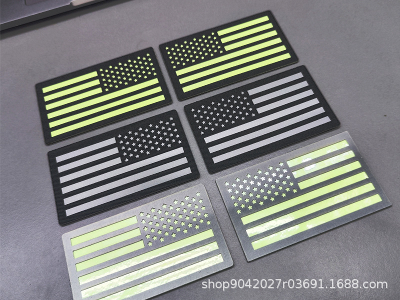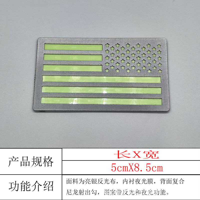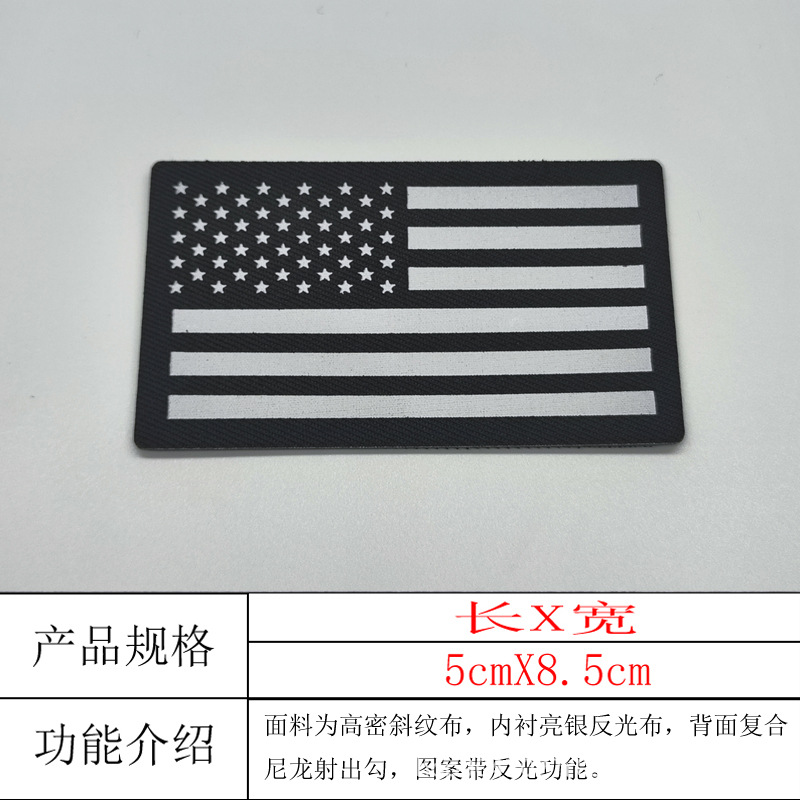 产品材质:黑色高密斜纹布、夜光膜、高ct反光布,尼龙射出勾魔术贴