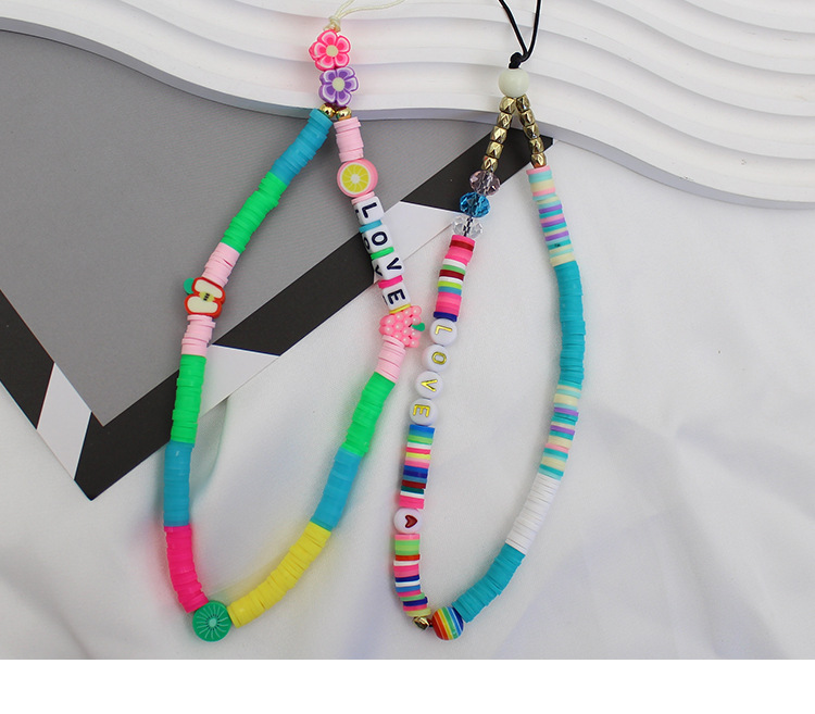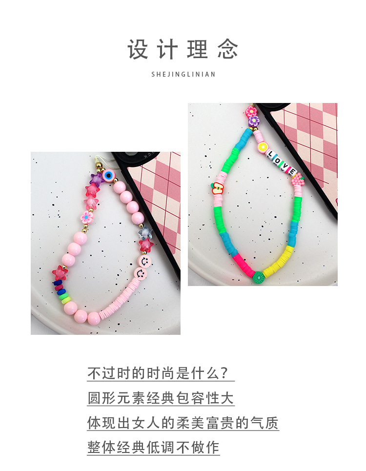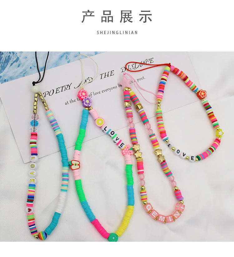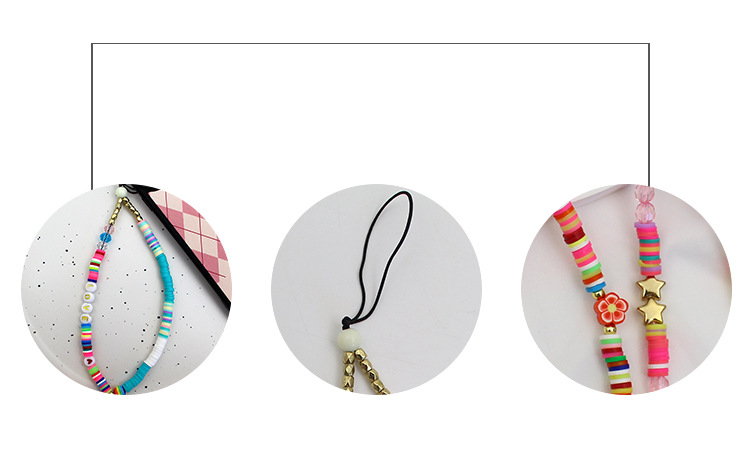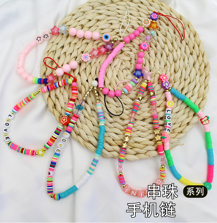 新型アクリル軟膏携帯電話のストラップとビーズをつなぎ合わせたカラー軟陶ins風韓国版キャンディー色の短いモデル