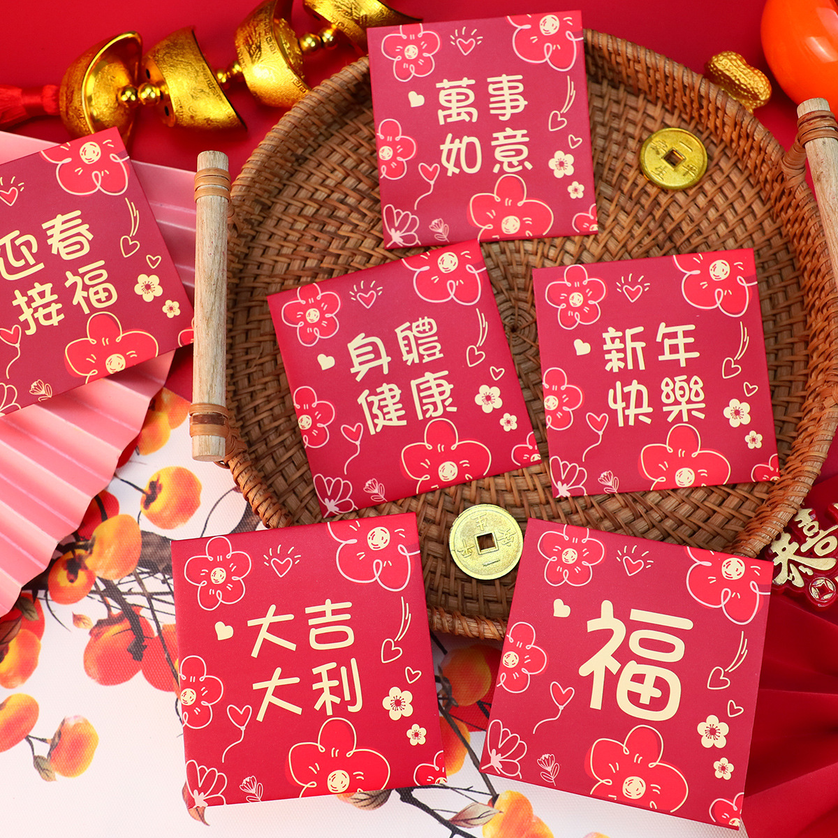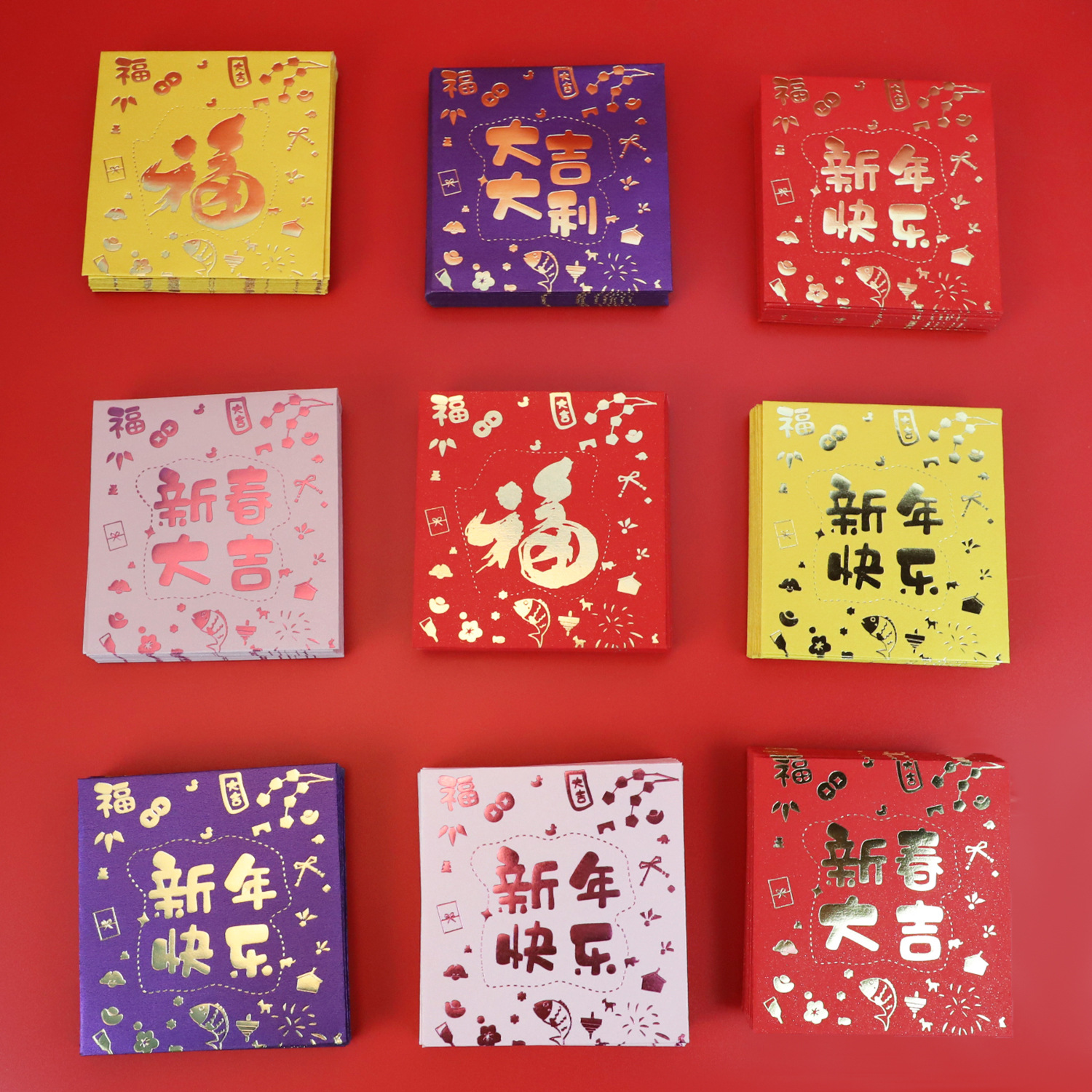 正方形の新型の新年の香港版の赤い包みのお祝いのアイデアの個性の通用する福の字の小さいサイズは亜膜の利益を覆って密封します。