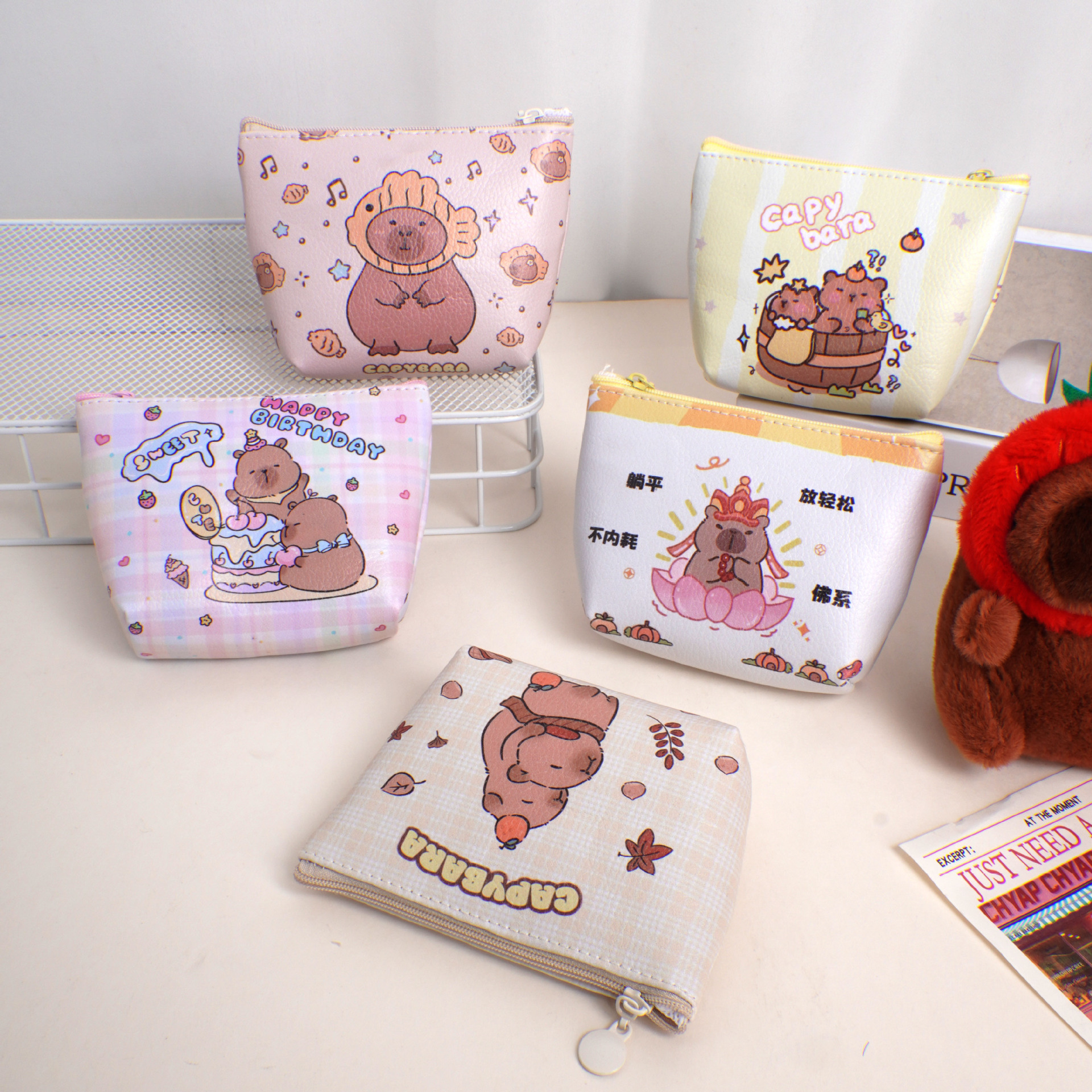 可爱卡皮巴拉创意零钱包学生耳机饰品收纳包多功能防水皮革硬币包