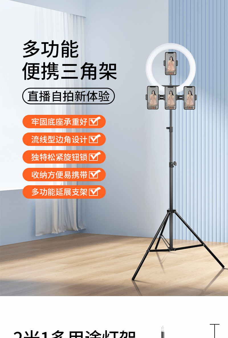 直播摄影专用补光灯支撑架便携户外自拍多功能可伸缩落地式三脚架