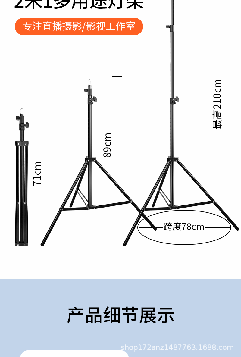 反折叠支架摄影补光灯支架三脚架加厚2.1米支架三脚架
