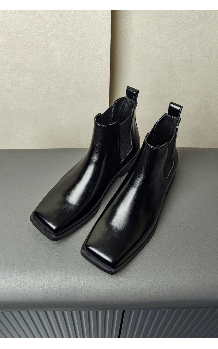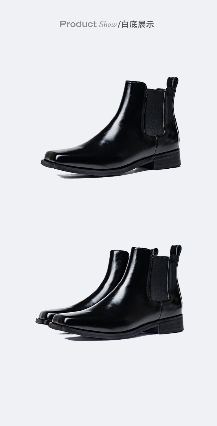 代発馬丁靴漆皮亮面男高さ6cm高級感英倫風厚い底機関車ショートブーツ黒