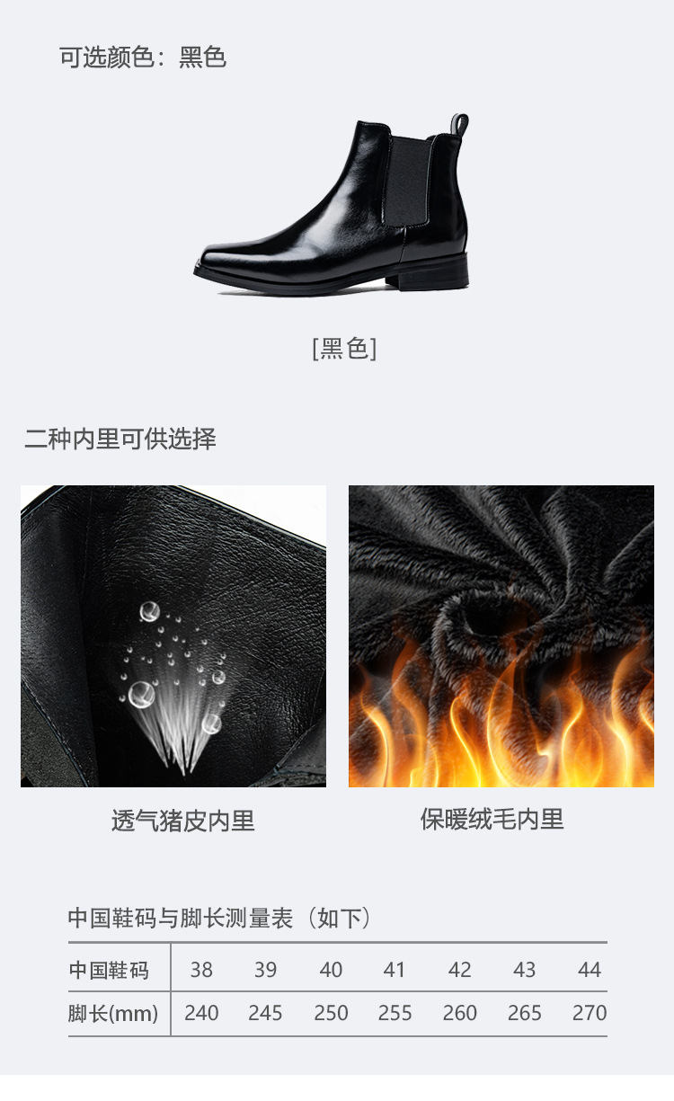 男士牛皮圆头马丁靴英伦风潮流时尚商务真皮防滑增高切尔西靴男