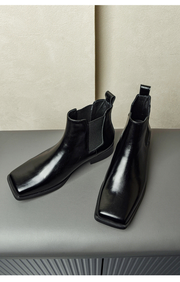 2025秋冬英伦复古切尔西靴男厚底休闲短皮靴一脚蹬高帮马丁靴