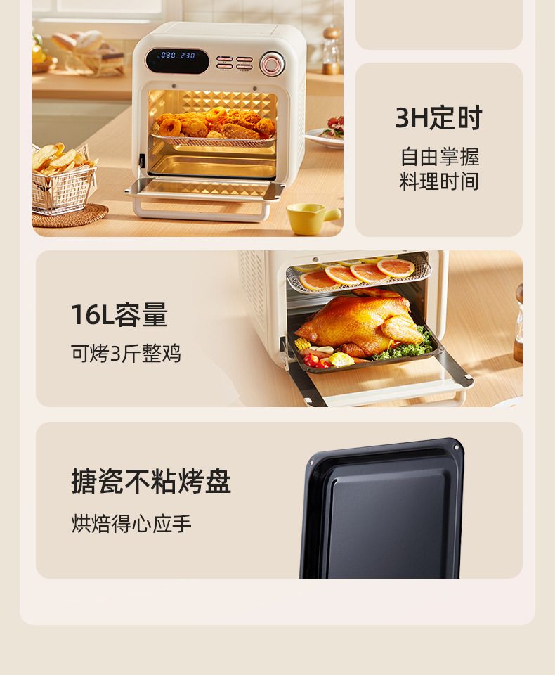 小貝豚オーブン家庭用焙煎専用空気揚げオーブン二合一多機能スマートモデル16l大容量