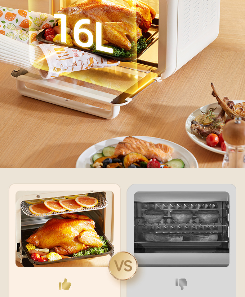Xiaobei Pig 電気オーブン 家庭用ベーキング専用 エアフライ電気オーブン オールインワン 16リットル 小型多機能オーブン
