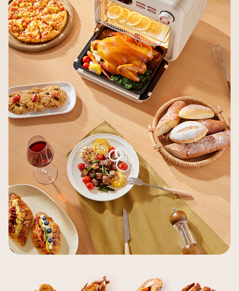 オーブン家庭用電気オーブン焙煎専用空気揚げオーブン蒸し焼き一体二合一業務大容量22L