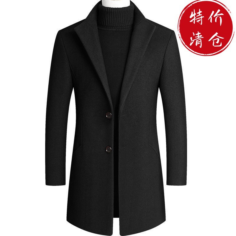 跨境秋冬季男士毛呢大衣中长款风衣加厚男装纯色外套西装厂家