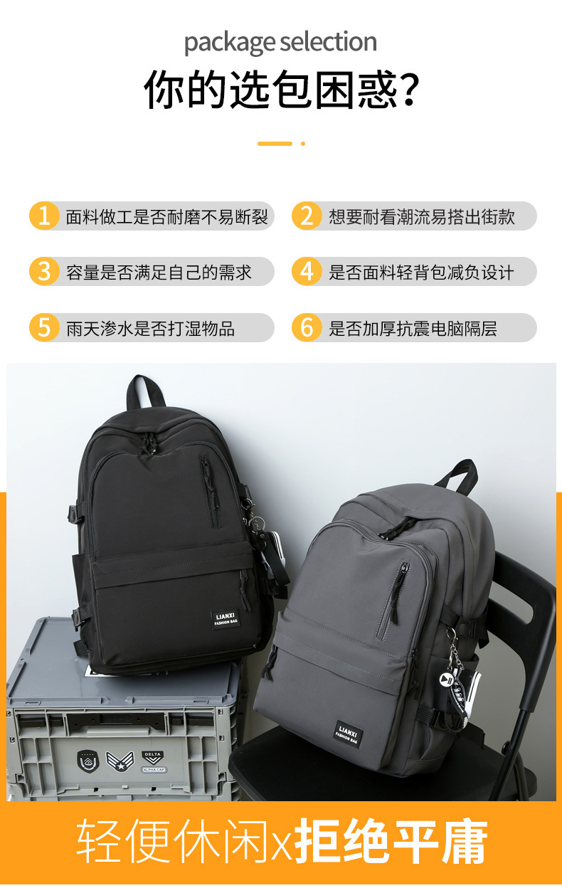 かばん男韓版ins大学生大容量中学生ファッションランドセルバックパック女パソコンバッグ