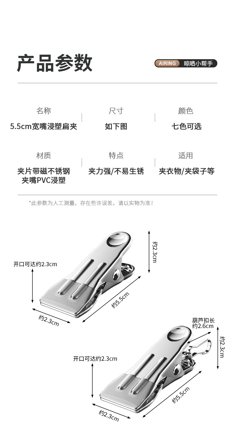 ステンレスクリップ家庭用防風物干しクリップ無痕干しクリップシールクリップミニ平口クリップ卸売り