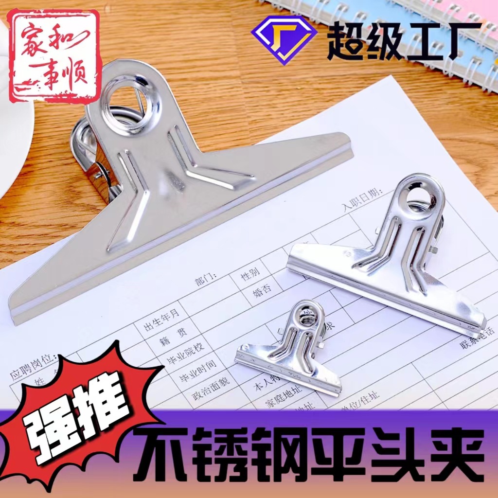 ステンレス製フォルダー、スチールクリップ、大小学生用テスト用紙、事務用品クリップ、燕尾クリップ、ロングテールチケットクリップ