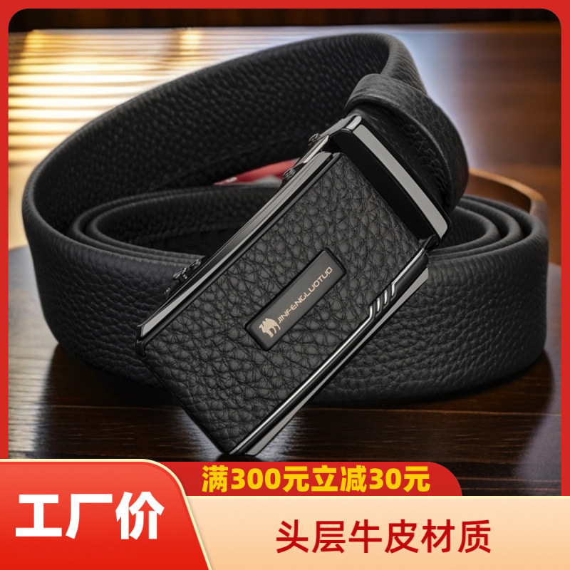 头层软牛皮男士自动扣皮带男款真皮高级感腰带商务百搭新款裤带男