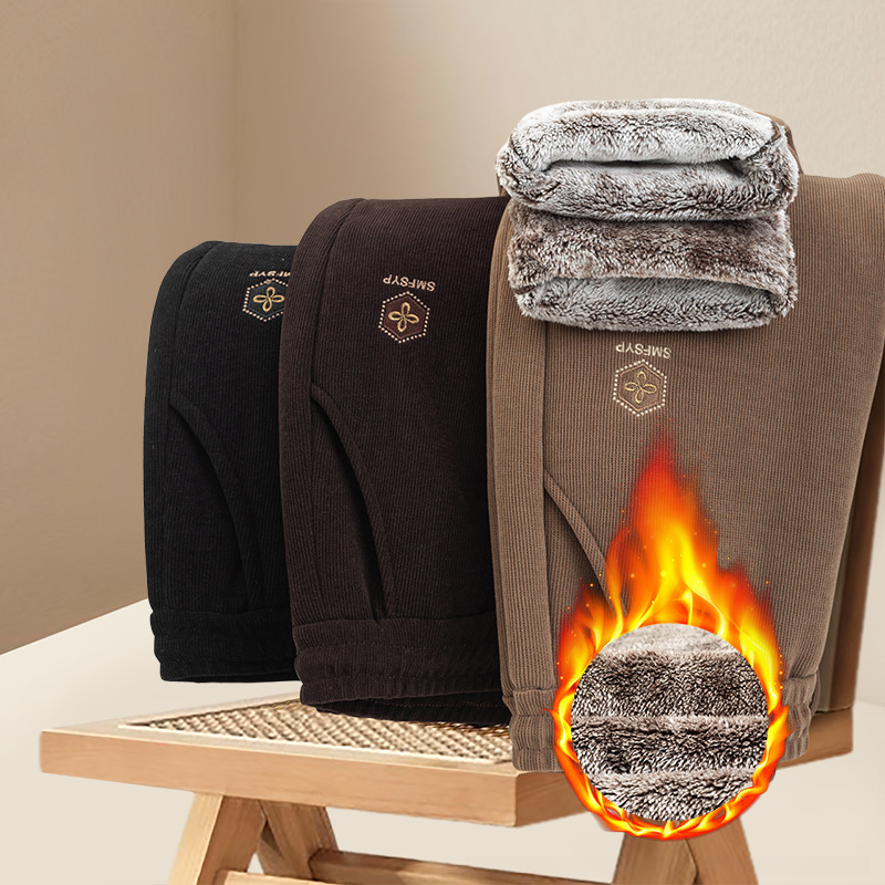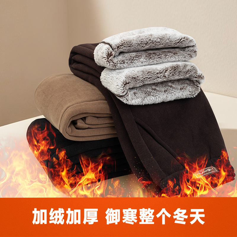 妈妈加绒裤子冬季外穿灯芯绒棉裤女中老年人加厚松紧高腰宽松保暖