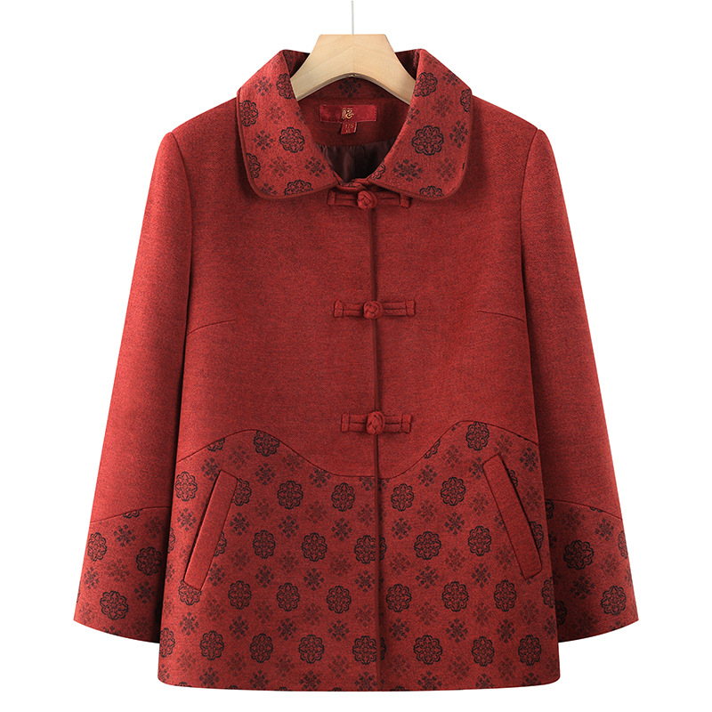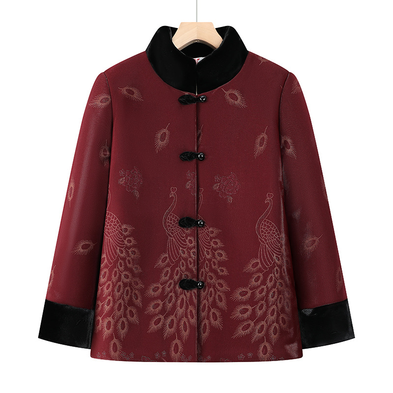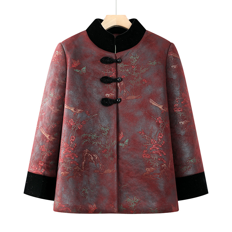 おばあさんの冬服のコートの女性の中高年の保温の綿入れの上着とベルベットの厚い綿服のお母さんの綿入れの老人の服