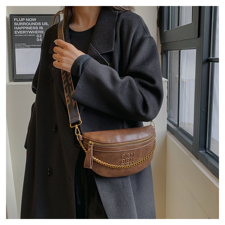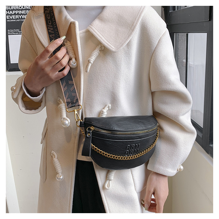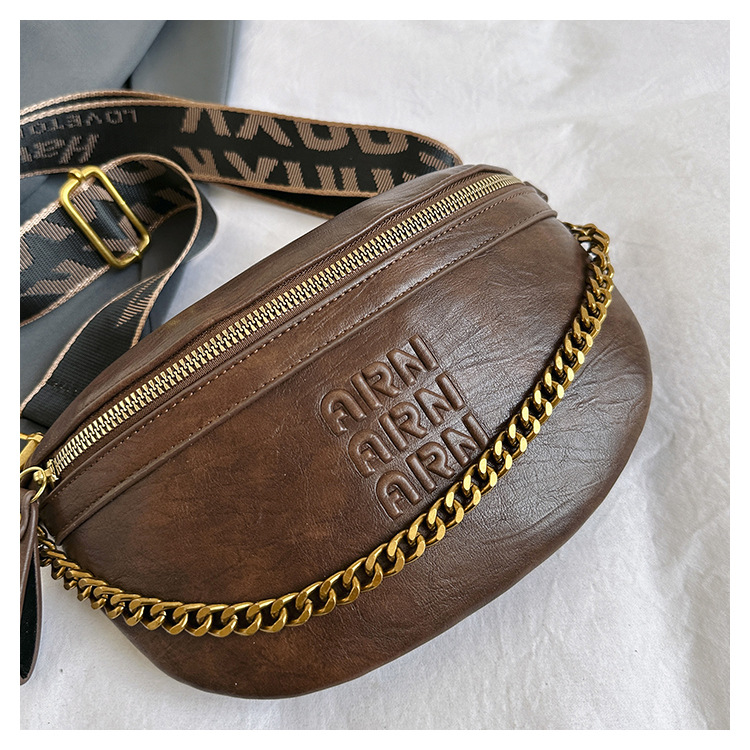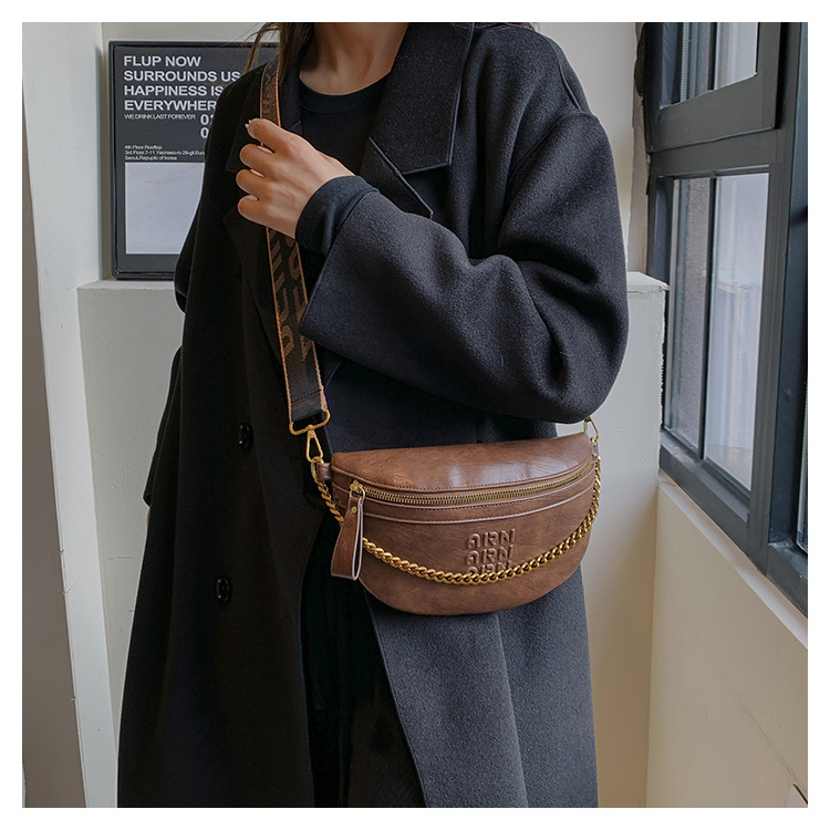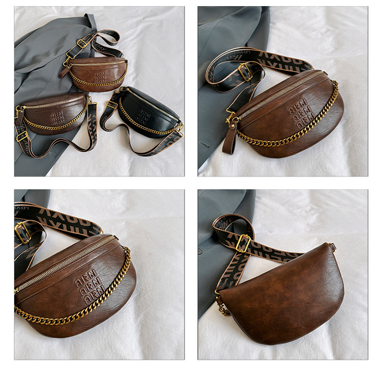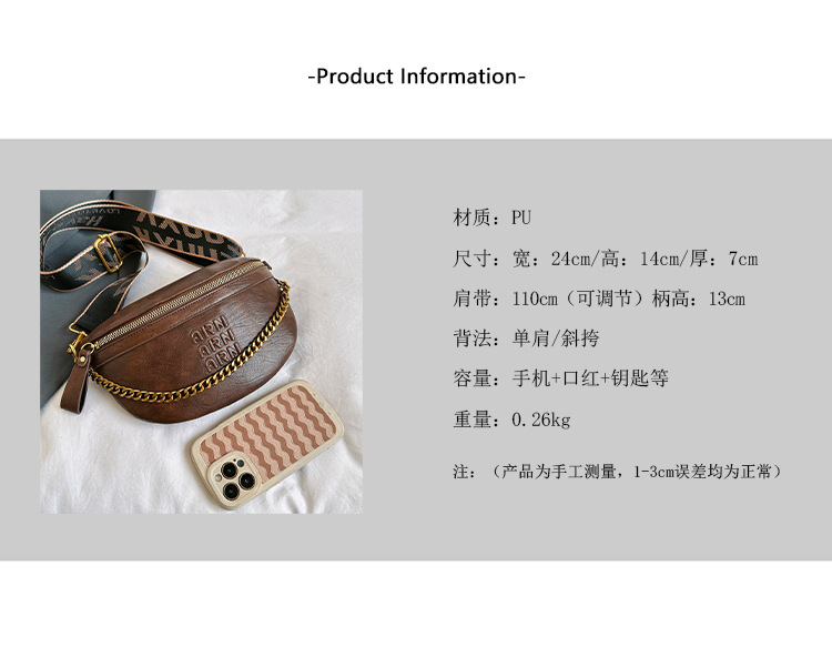 クロスボーダー新作チェーンワイドショルダーストラップ斜め掛けチェストバッグレディースバッグins風PU多用途小さめ香風シングルショルダーウエストバッグ上品