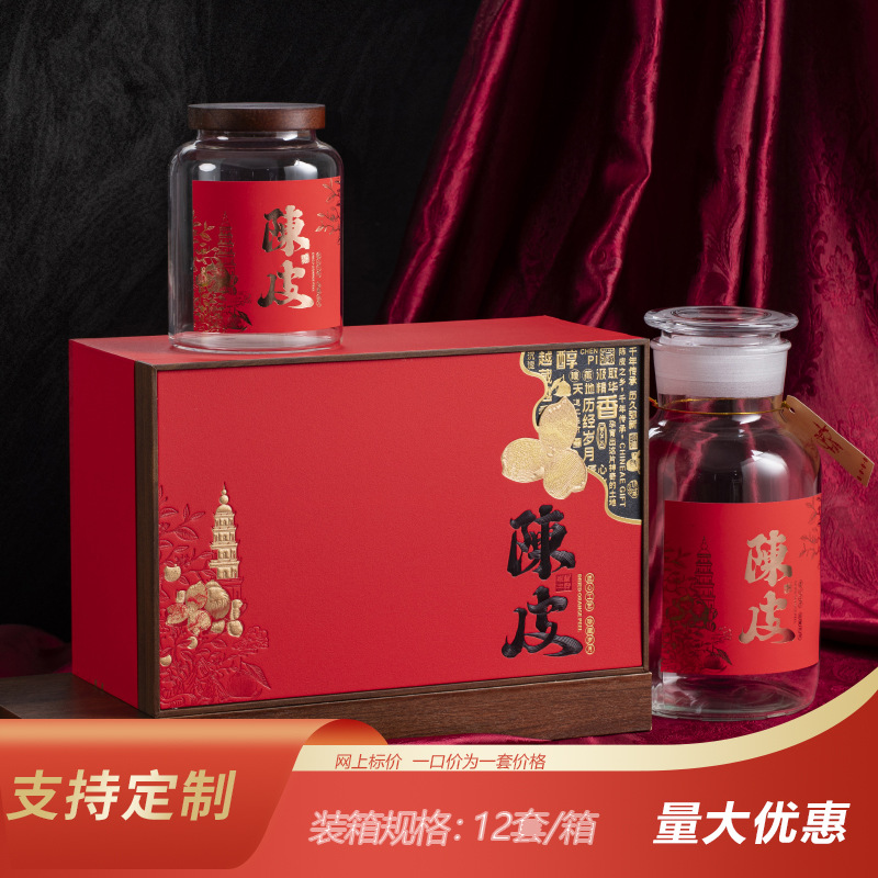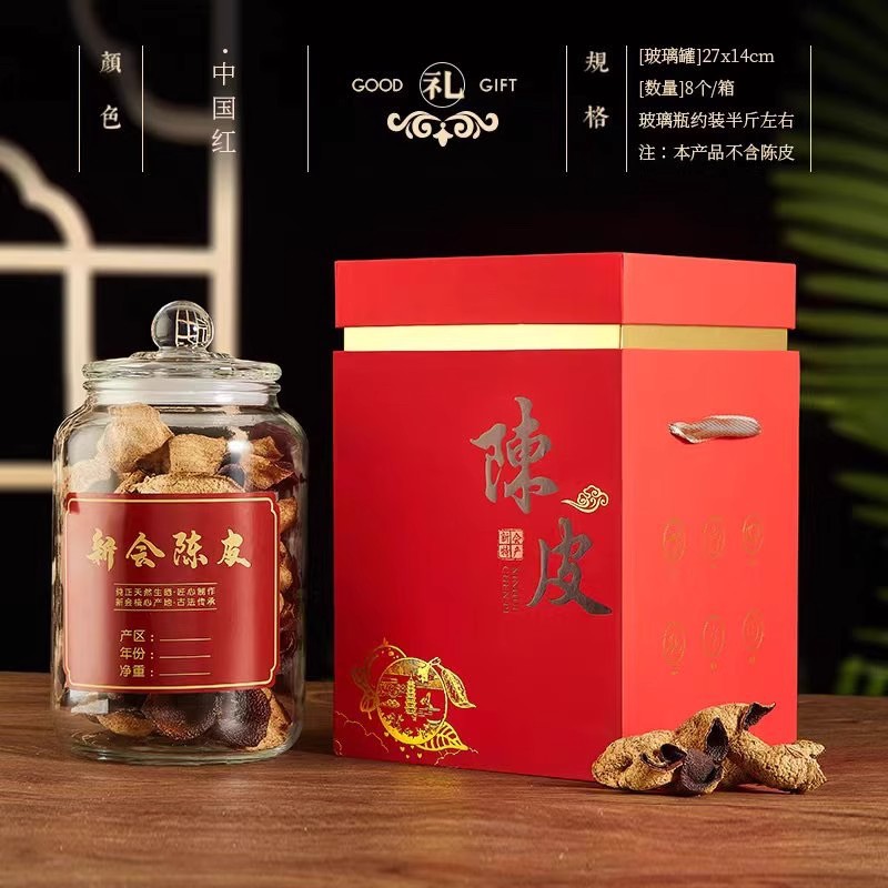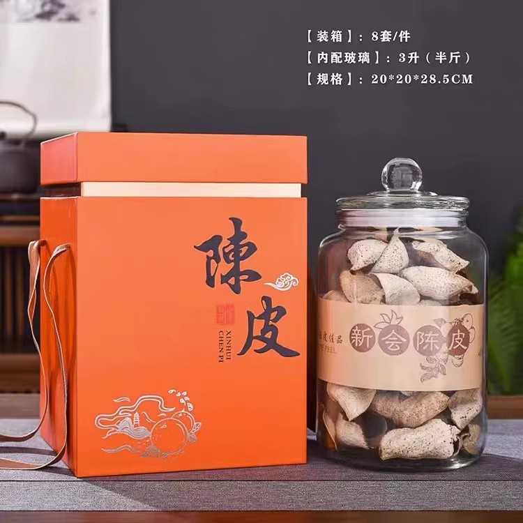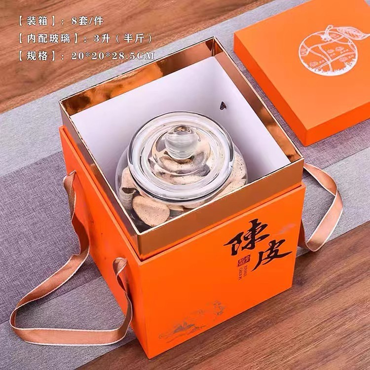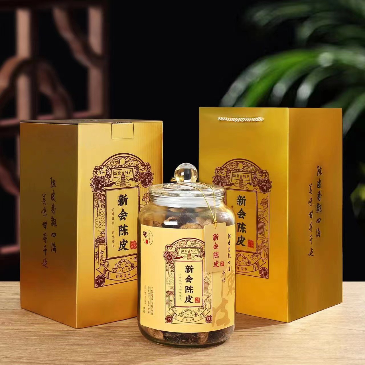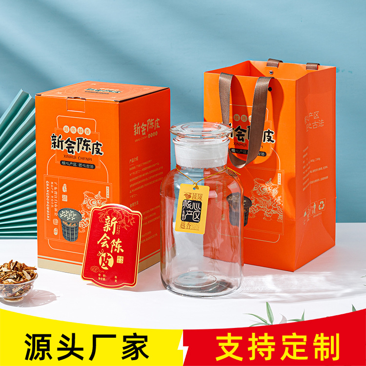 高档新会陈皮礼盒包装盒配250g密封玻璃瓶含手提袋吊牌可客订logo