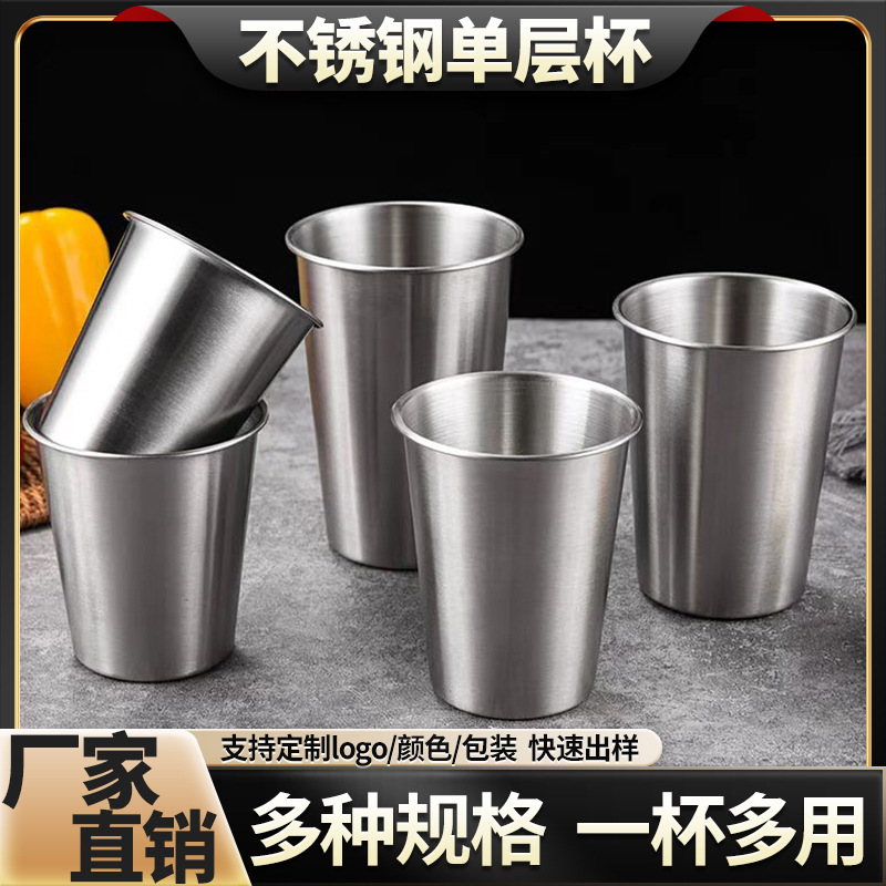 跨境304不锈钢水杯露营啤酒杯户外杯子单层冷饮杯餐厅口杯商用