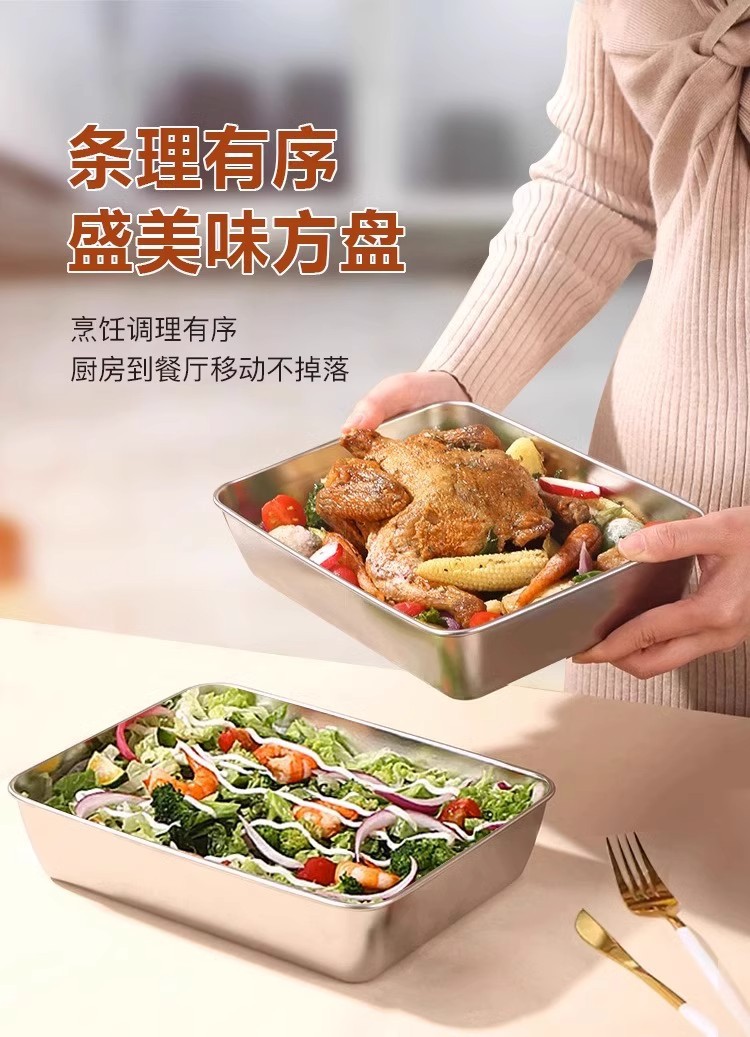 304毛巾盘不锈钢方盘托盘烧烤盘家用长方形菜盘平底凉拌微波炉