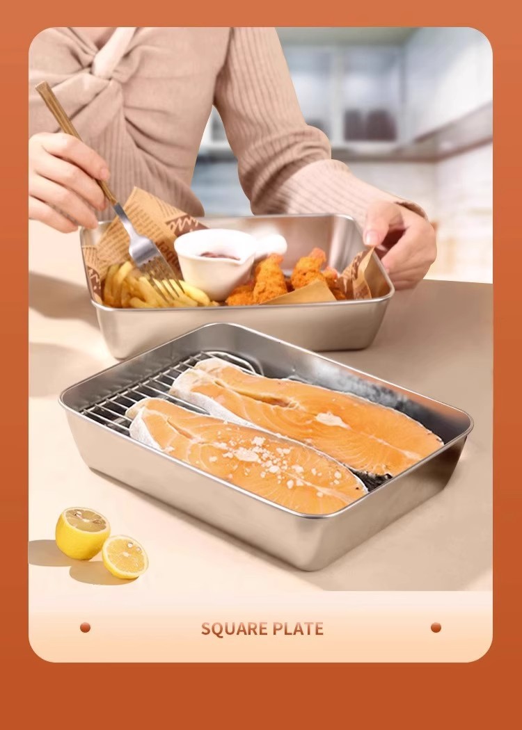 正方形のステンレス製食器、鍋の準備用皿、深皿、トレイ、タオル皿、バーベキュー皿、家庭用魚皿