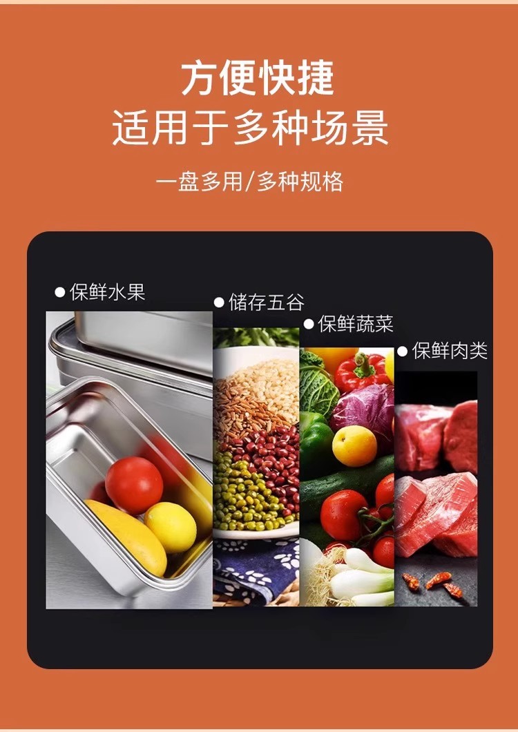 304ステンレス鮮度保持ケース蓋付き角皿冷蔵庫収納ケース魚焼き皿バーベキュー皿果物皿