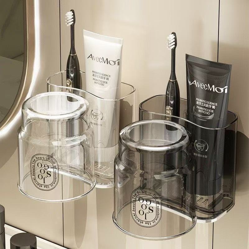 歯ブラシホルダー、マウスウォッシュカップ、パンチフリーラック、歯ブラシホルダー、歯ブラシカップ、バスルーム歯ブラシカップホルダー、壁掛け