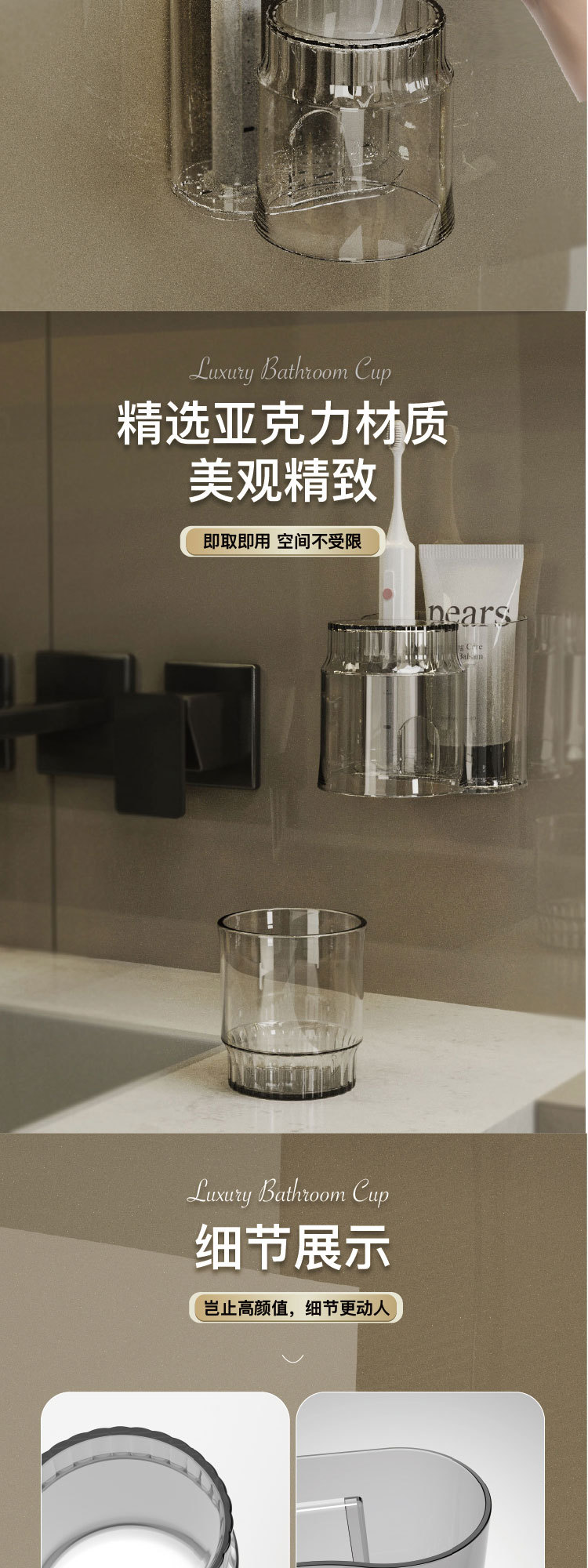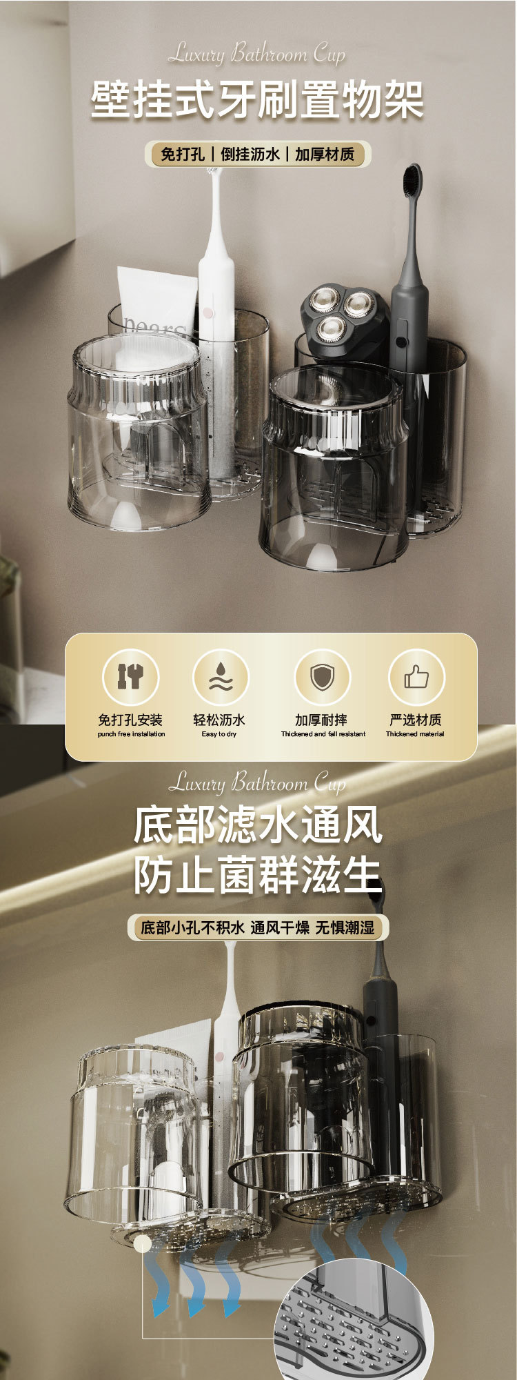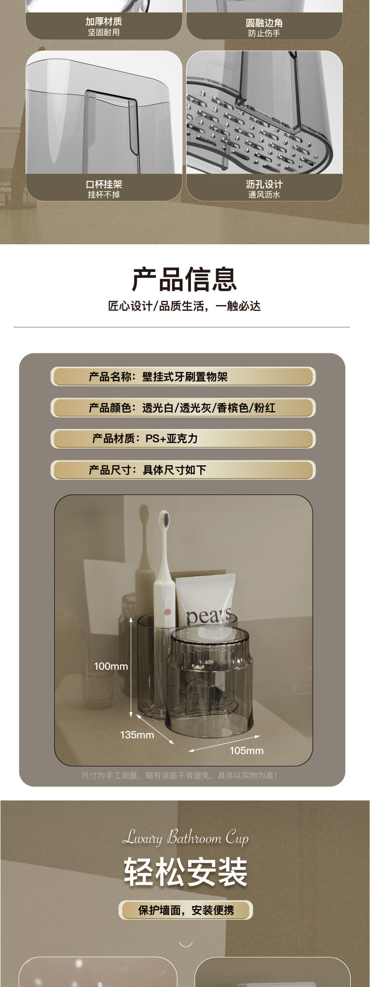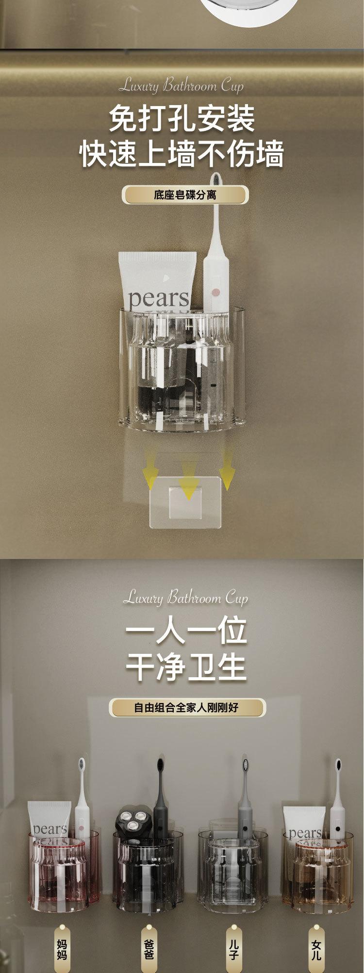 牙刷架子置物架牙缸漱口杯电动牙刷架情侣壁挂式轻奢牙杯牙膏套装