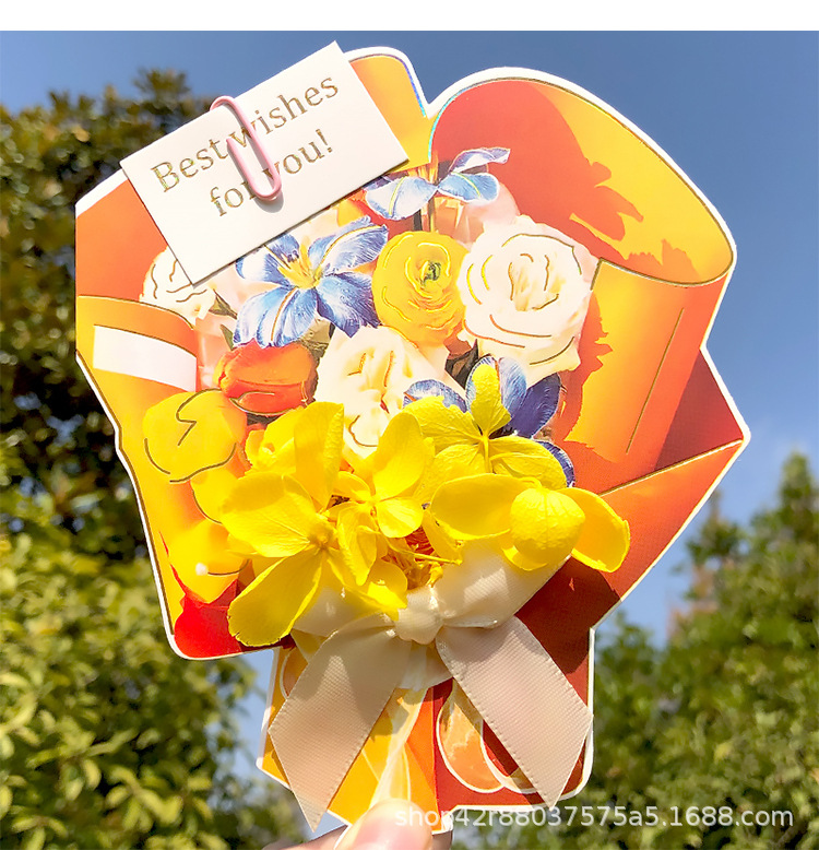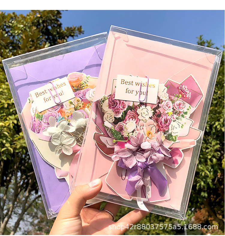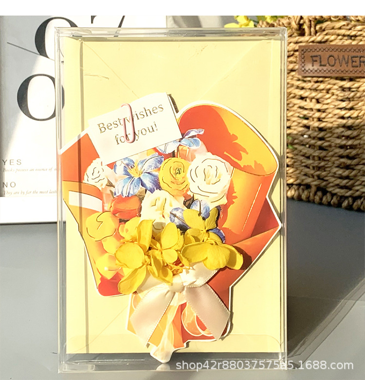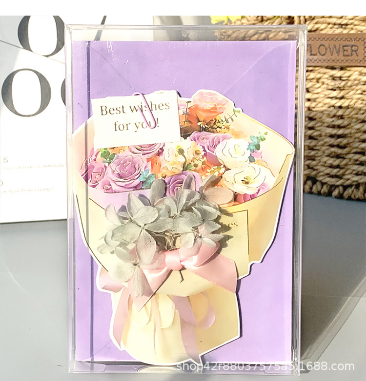 辰陽文化グリーティングカードは花を見るとdiy創意ドライフラワー誕生日カード立体造形小カード祝福カードが好きです