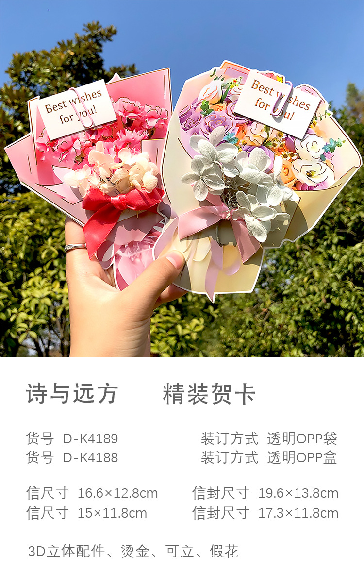 精雕立体卡芳华绽放高颜值高级感婚庆学生送礼花束精致造型留言卡